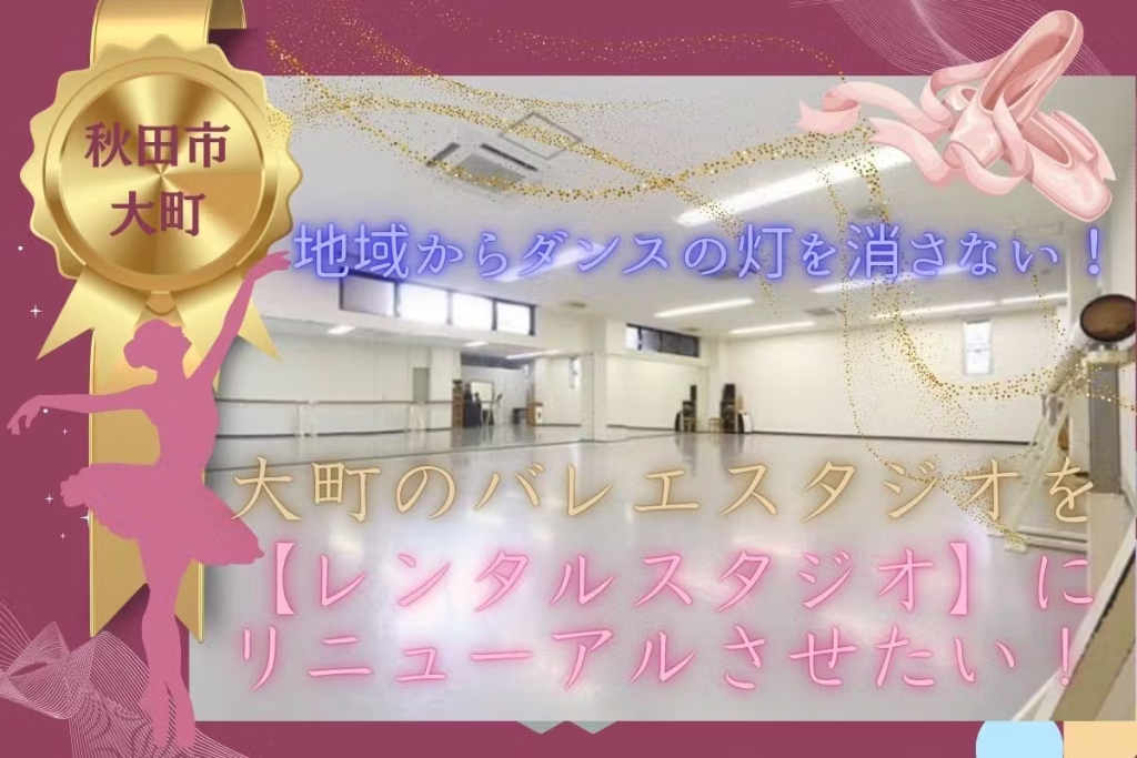 このたび、当バレエスタジオは移転することになり、これに伴ってこの大町のスタジオは閉鎖を予定していました。しかし、周りのダンサーさんや先生方から寄せられた「もったいない!」のお声。こうした声に背中を押され、私は決意しました。「ダンサーたちのためにスタジオをこのまま残し、”レンタルスタジオ”として再生させよう!」「もう一度、この場所に灯りを!」―。その想いから、クラウドファンディングに挑戦することにしました。
